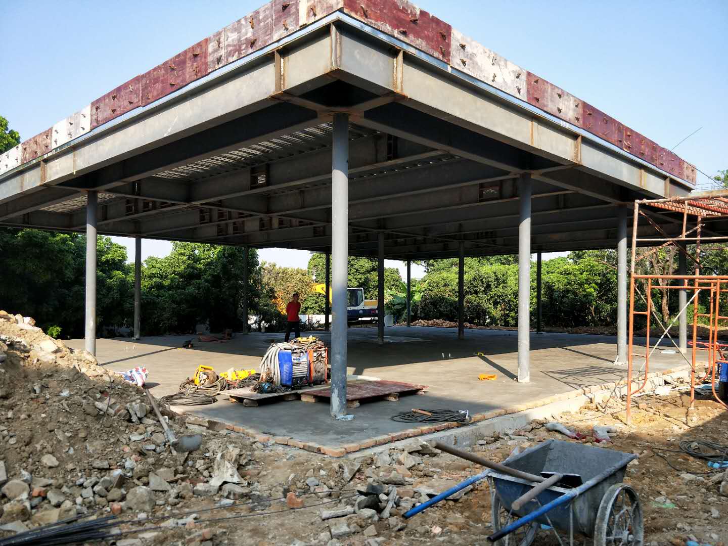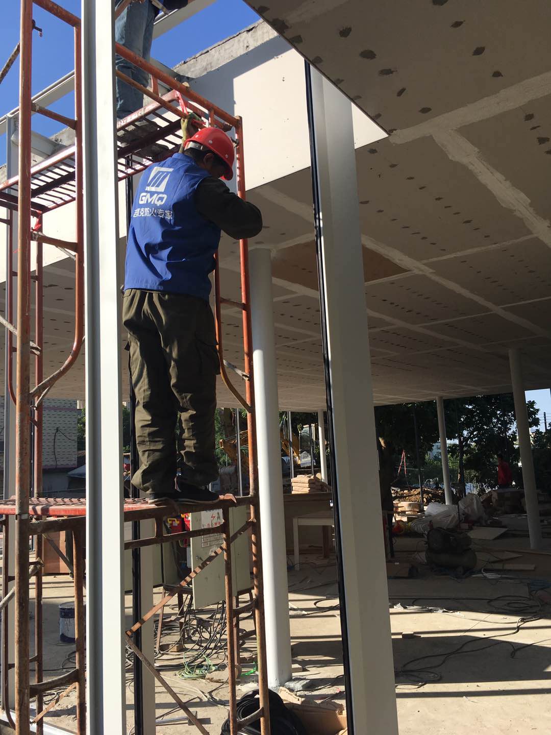 吉美克專業(yè)安裝團(tuán)隊(duì)初步搭建T型鋼幕墻