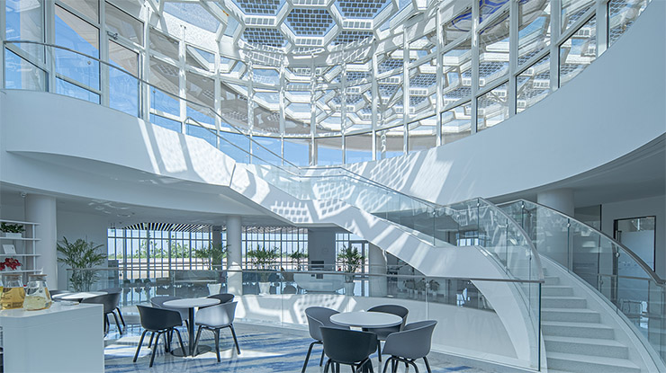 “未來源點(diǎn)”位于雄安站東廣場(chǎng)南側(cè),建筑設(shè)計(jì)理念源自雄安站“青蓮滴露、潤澤雄安”的寓意,以淀泊風(fēng)光為靈感基礎(chǔ),建筑像層層蓮葉,高低錯(cuò)落,形成“蓮葉三疊、魚戲蓮葉”之意。建筑立足于“世界眼光、國際標(biāo)準(zhǔn)”,以設(shè)計(jì)、施工、使用、維護(hù)等多維度為切入點(diǎn),更加注重智慧科技元素的運(yùn)用,嚴(yán)格按照綠色建筑標(biāo)準(zhǔn)設(shè)計(jì)建造。建筑采用了光伏直流供電系統(tǒng),基于智慧能源大腦系統(tǒng)進(jìn)行管理,最大化實(shí)現(xiàn)能源實(shí)時(shí)可控、系統(tǒng)化節(jié)能。通過整合服務(wù)層、應(yīng)用層、網(wǎng)絡(luò)層、感知層資源,“未來源點(diǎn)”搭建了一套完整的具有創(chuàng)新特色的有機(jī)智慧體系,建立了智慧IOC運(yùn)營服務(wù)平臺(tái),集成安防、能源、環(huán)境、設(shè)備設(shè)施管理等功能,為未來投入使用提供智能化、高品質(zhì)的服務(wù),這里將成為雄安站樞紐片區(qū)的城市名片、地標(biāo)級(jí)城市會(huì)客廳。