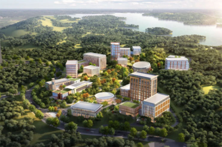本項(xiàng)目為華為自主創(chuàng)新的重要研究場(chǎng)所之一位于廣東省東莞市松山湖生態(tài)景區(qū)范圍,于2022年2月開工,地塊北側(cè)即為風(fēng)景秀麗的松山湖景區(qū),四周山丘環(huán)繞。項(xiàng)目總占地面積16.85萬(wàn)平方米,地上建筑面積16.85萬(wàn)平方米,地下建筑面積15萬(wàn)平方米,總建筑面積30.82萬(wàn)平米,限高60米,可容納5000人辦公。建成后將成為具有高科技元素的現(xiàn)代化工作場(chǎng)所與綠色生態(tài)相結(jié)合的華為全球創(chuàng)新基地。