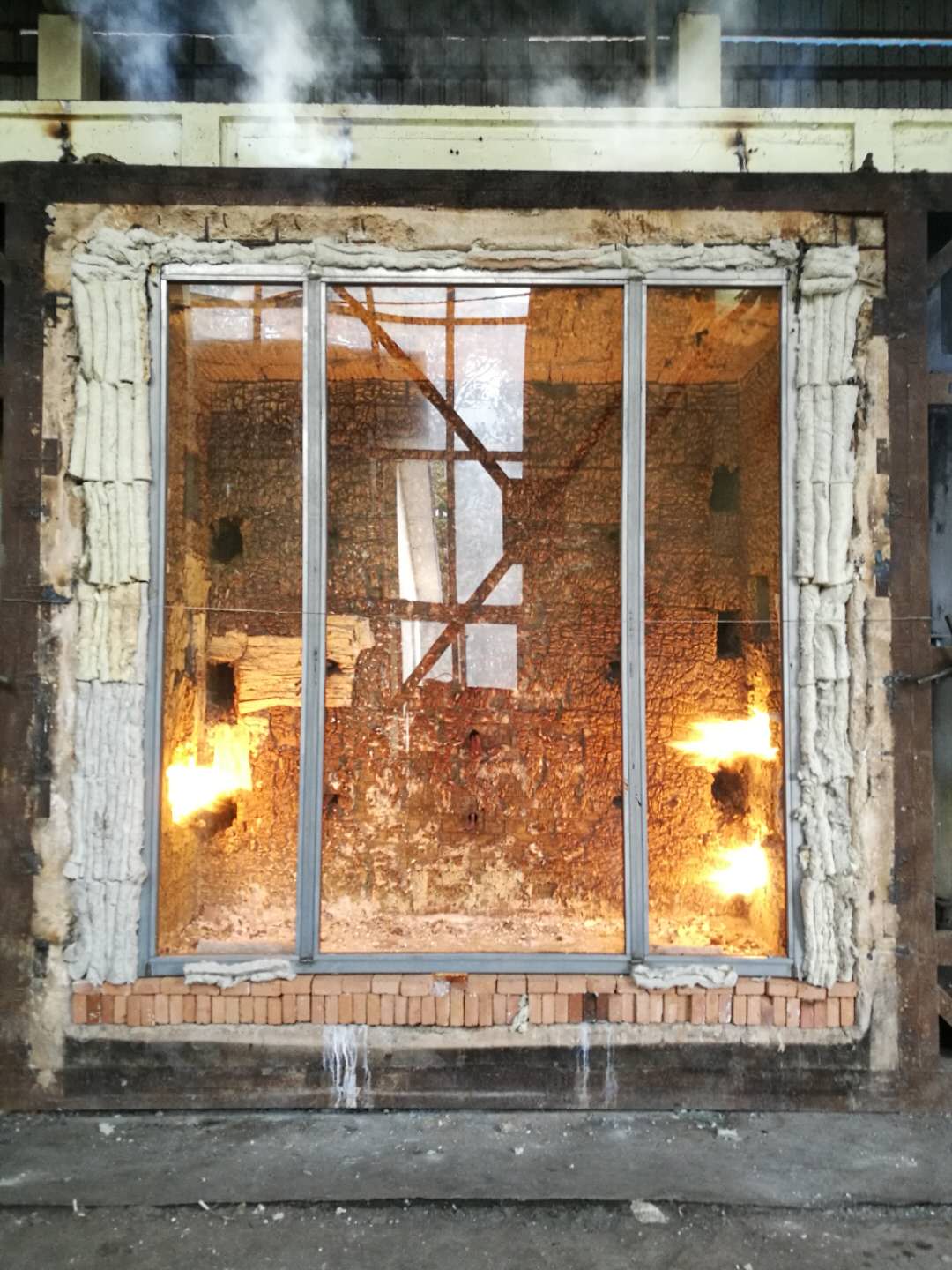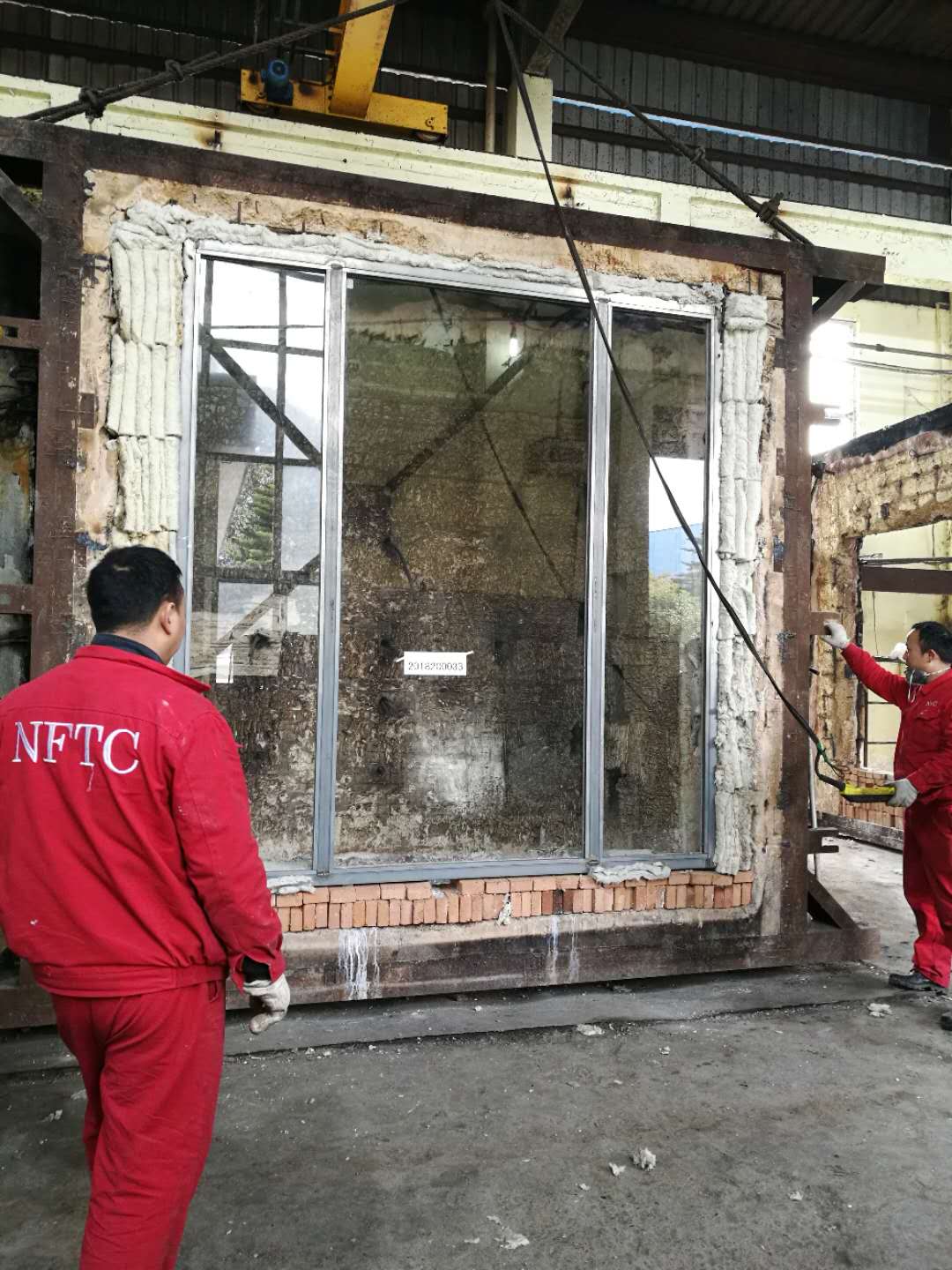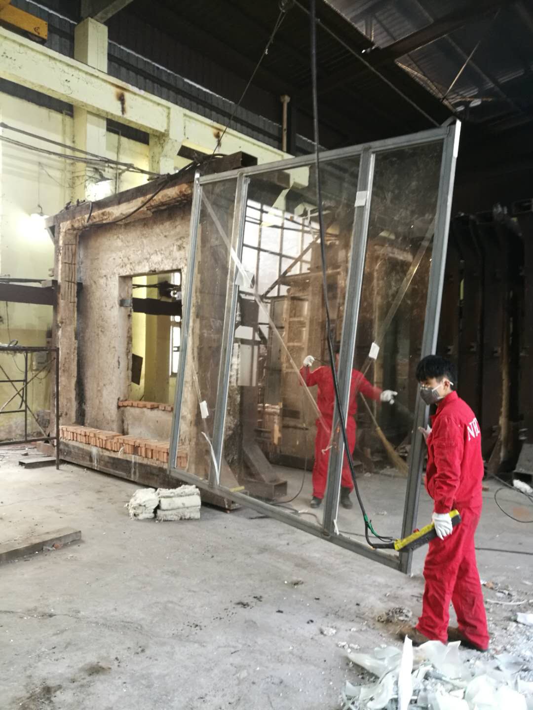 天津吉美克建材有限公司自主研發(fā)鑲玻璃構(gòu)件,在國家防火建筑材料質(zhì)量監(jiān)督檢驗(yàn)中心進(jìn)行耐火完整性檢測。