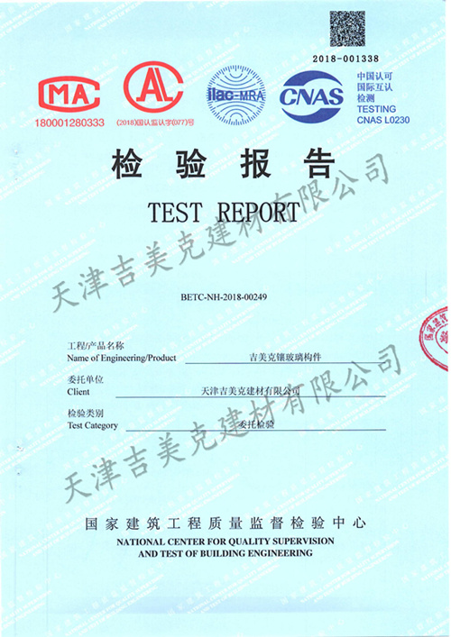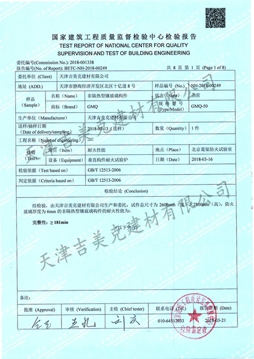 天津吉美克建材有限公司,作為專業(yè)的防火幕墻生產(chǎn)廠家,在保證產(chǎn)品質(zhì)量的同時(shí)不斷創(chuàng)新研發(fā),近日我司自主研發(fā)的非隔熱鑲玻璃構(gòu)件已通過(guò)181分鐘耐火檢測(cè),接受真正的行業(yè)考驗(yàn)。