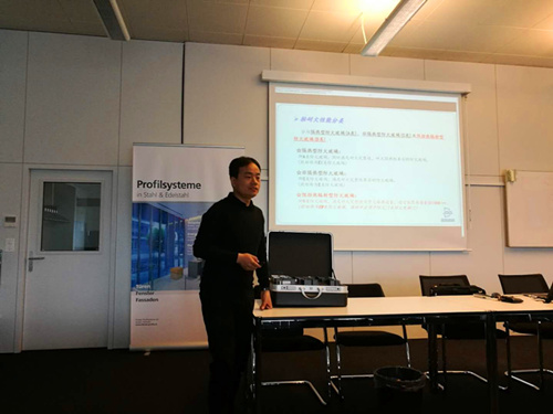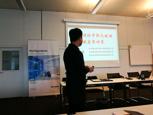 Forster總部學習交流現(xiàn)場,吉美克總經(jīng)理給瑞士Forster同事介紹中國防火規(guī)范及應用技術