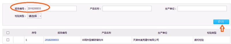 3.點(diǎn)擊“報(bào)告查詢”按鈕,進(jìn)入查詢界面,輸入您要查詢的報(bào)告編號(hào),或者產(chǎn)品名稱,生產(chǎn)單位,點(diǎn)擊“查詢”按鈕,即可搜索到相關(guān)的檢測(cè)報(bào)告。