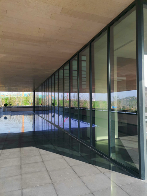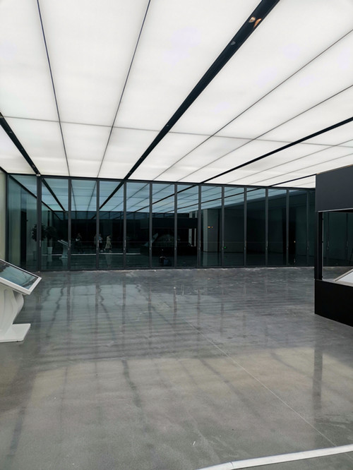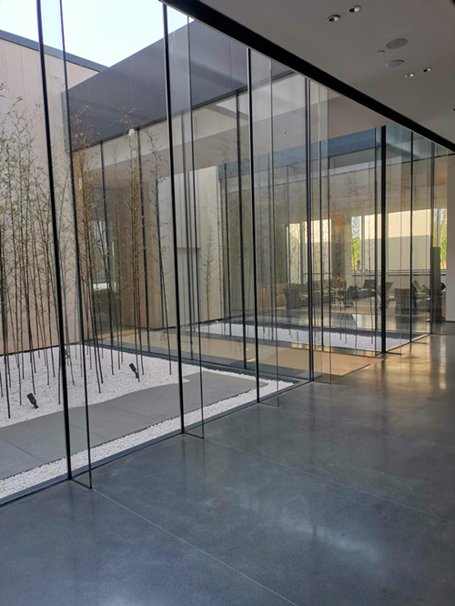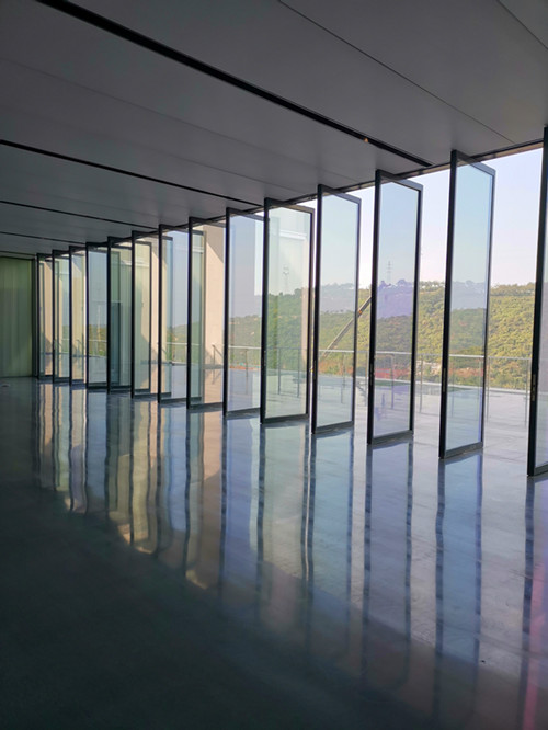 該系統(tǒng)具有出色的隔音效果,門(mén)扇關(guān)閉時(shí),給室內(nèi)提供一個(gè)舒適安靜的洽談環(huán)境;與此同時(shí),該系統(tǒng)還具有超纖細(xì)的可視截面,客戶從室內(nèi)透過(guò)大面板玻璃可以一覽門(mén)外風(fēng)景,同時(shí)讓室內(nèi)空間更加寬敞明亮,與云智小鎮(zhèn)的地理位置完美契合,讓客戶零距離感受現(xiàn)代美與自然美的融合。