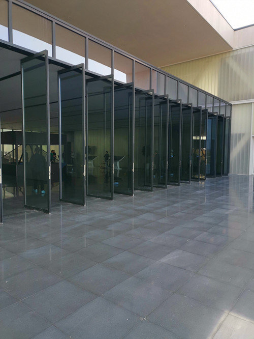 該項(xiàng)目整體采用手動(dòng)中軸門(mén)作為區(qū)域分隔主體,4.2米超高中軸門(mén),全部采用Forster Unico 隔熱系統(tǒng)進(jìn)口鋼型材焊接制成,其纖細(xì)的可視面結(jié)構(gòu)在滿足了門(mén)框型材不外露的美觀要求的同時(shí),還充分實(shí)現(xiàn)了高強(qiáng)度的建筑需要;通過(guò)特殊工藝處理,使4.2米超常規(guī)高度門(mén)最大限度的實(shí)現(xiàn)了安全性和穩(wěn)定性。