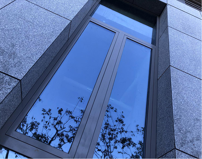 該項(xiàng)目幕墻采用GMQ防火幕墻系統(tǒng)(滿足耐火極限1.5h及1.0h)。外立面整體效果簡潔大方,線條規(guī)整,比例勻稱,可視面僅為60mm,可做出超大跨度,在保證高強(qiáng)度和高穩(wěn)定性的基礎(chǔ)上使玻璃面積最大化,采光效果更加。面材采用25mm復(fù)合防火玻璃+LOW-E玻璃,在滿足防火性能的基礎(chǔ)上,還具有優(yōu)異的隔熱、保溫性能,可大大降低因輻射而造成的室內(nèi)熱能向室外的傳遞,可達(dá)到理想的節(jié)能效果,實(shí)現(xiàn)冬暖夏涼的舒適效果。